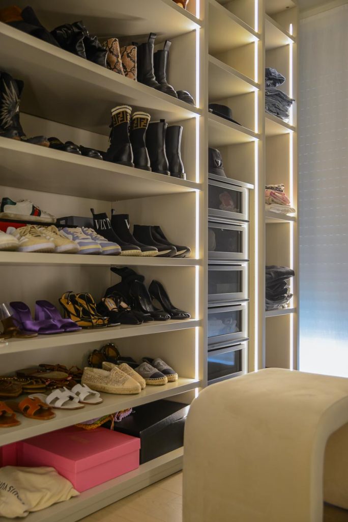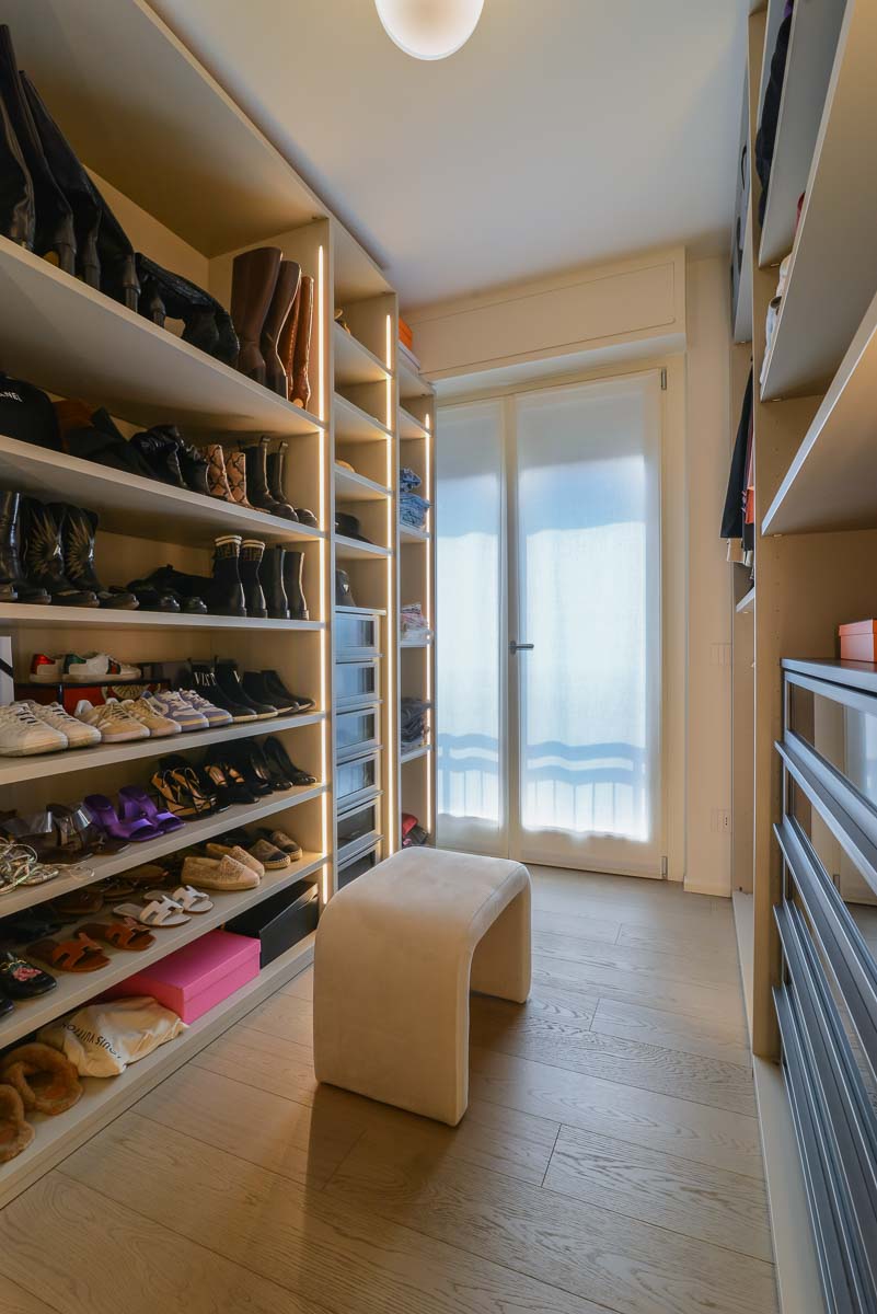 Ogni anta, cerniera e modulo viene studiato nei minimi dettagli per garantire funzionalità e armonia estetica. La continuità delle linee, l’assenza di vuoti inutilizzati, l’integrazione con nicchie o travi esistenti rendono questo tipo di armadio una scelta ideale per chi desidera ordine, capienza e un risultato perfettamente inserito nell’ambiente. Grazie alla falegnameria interna, Colzani è in grado di sagomare ogni elemento, proponendo finiture personalizzate e accessori interni disegnati su misura: cassettiere, illuminazione integrata, vani per borse, scarpiere estraibili o specchi incassati.
