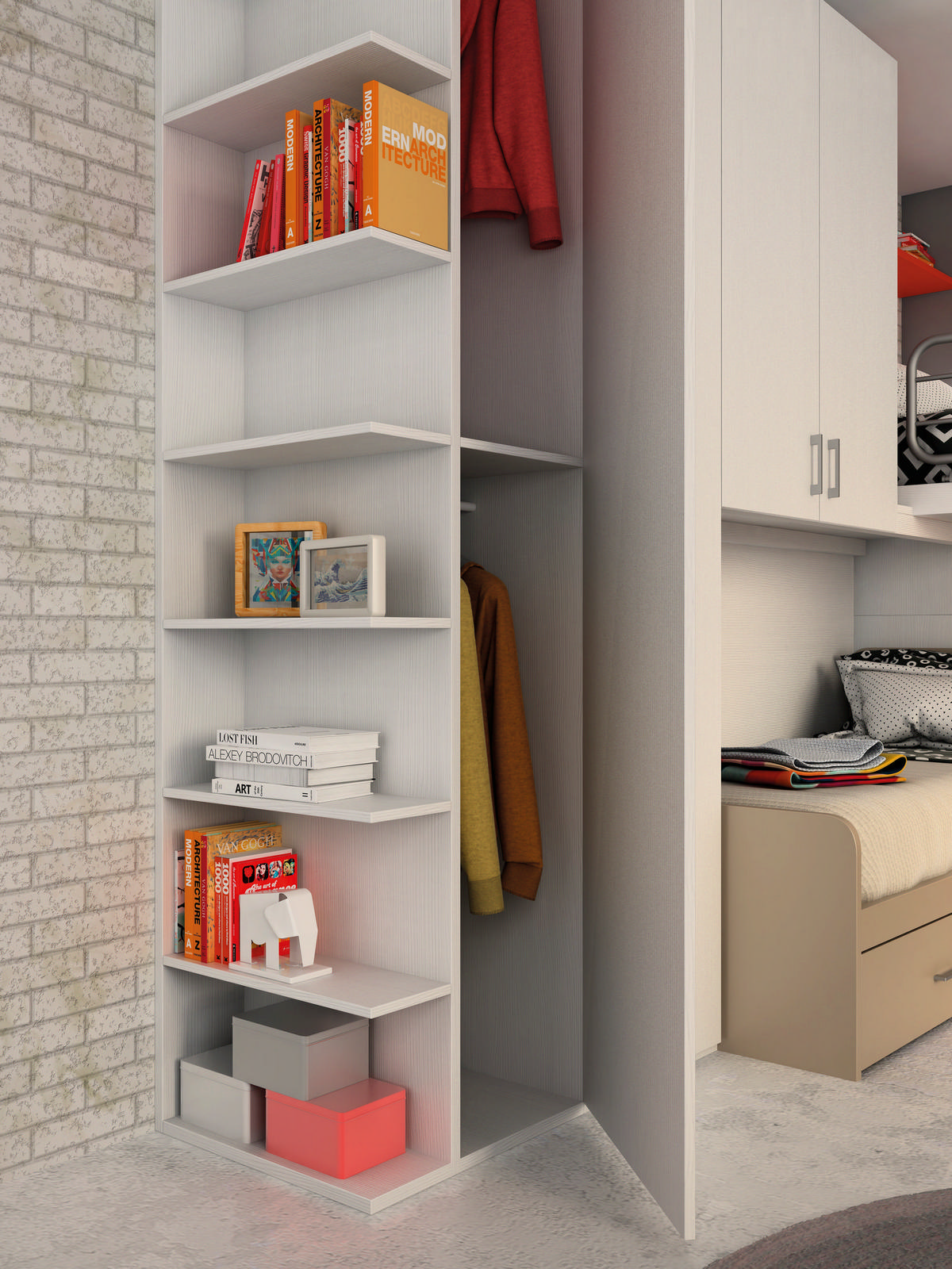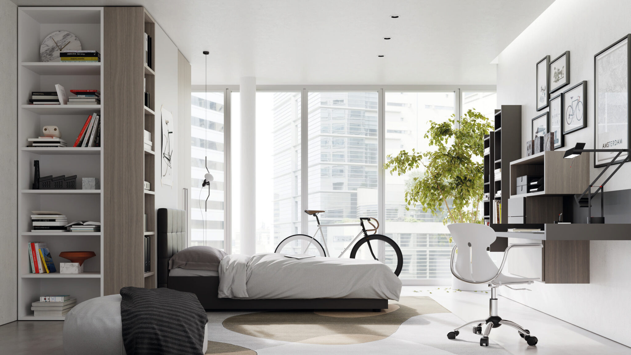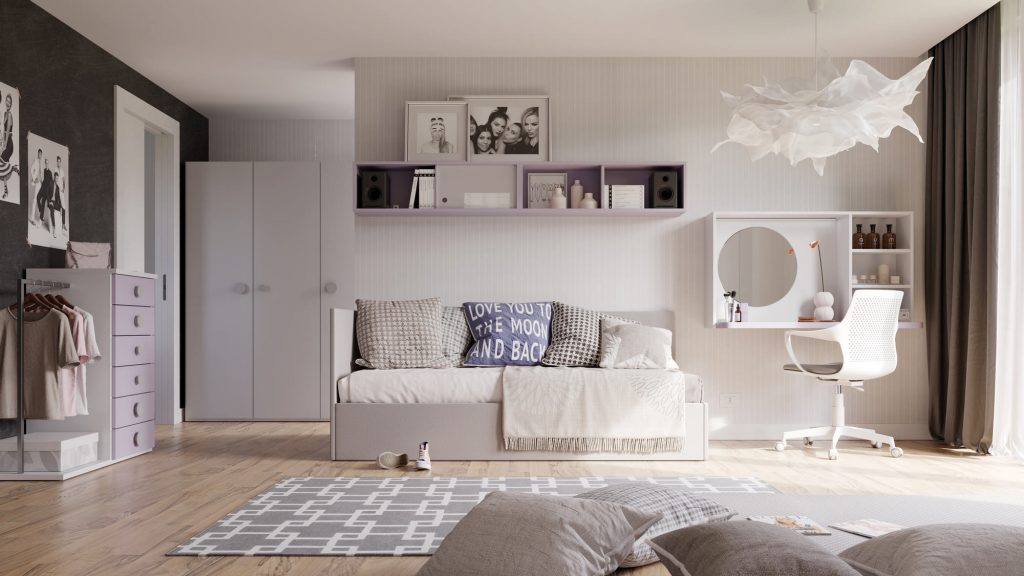 Quando i figli diventano adolescenti, la cameretta cambia ancora pelle. Colzani progetta ambienti dal design maturo, che riflettano la personalità del ragazzo o della ragazza. Colori più neutri o decisi, materiali resistenti, illuminazione studiata per lo studio e il relax. Viene valorizzato il concetto di “zona”: un angolo per dormire, uno per studiare, uno per rilassarsi.