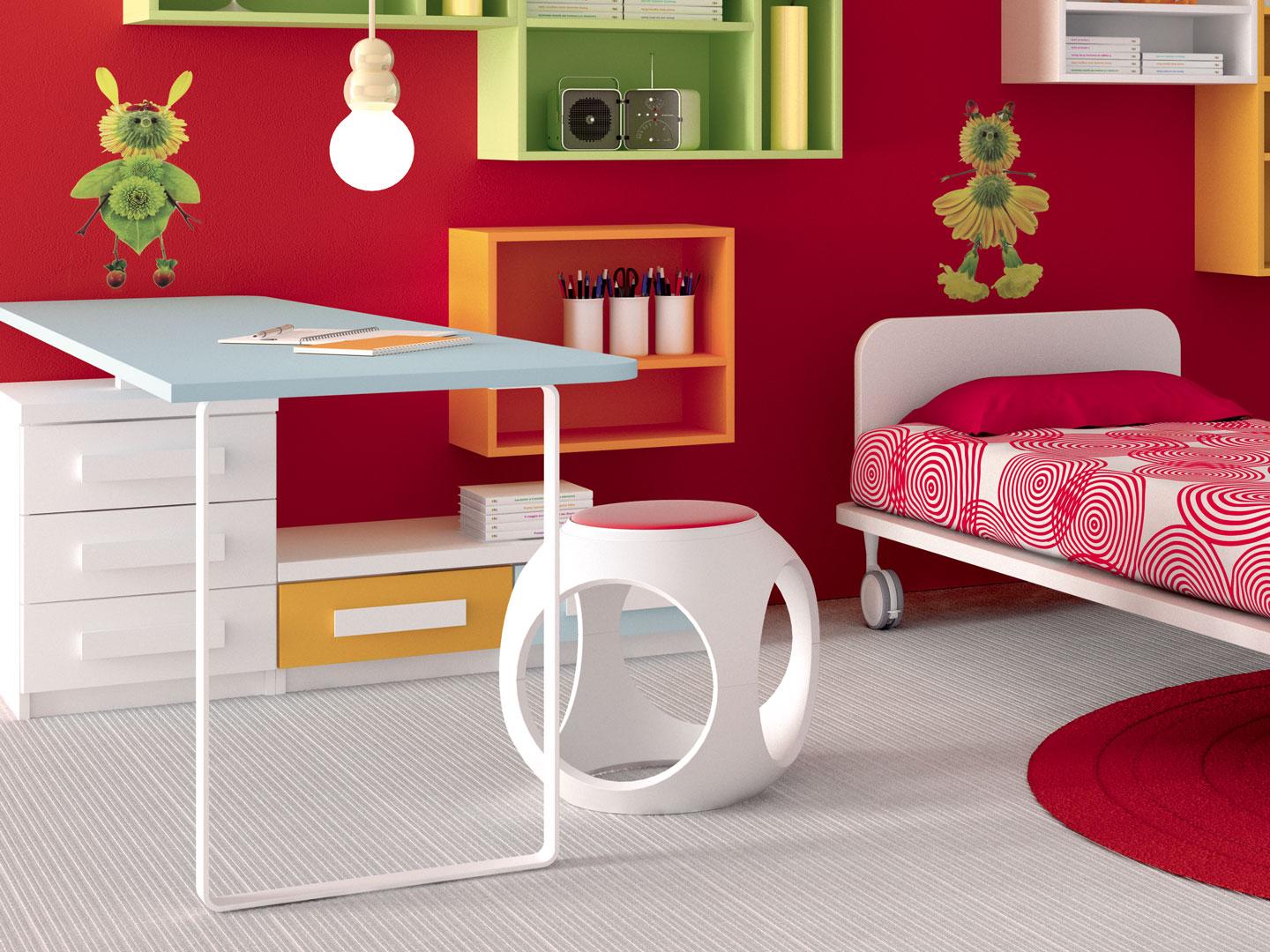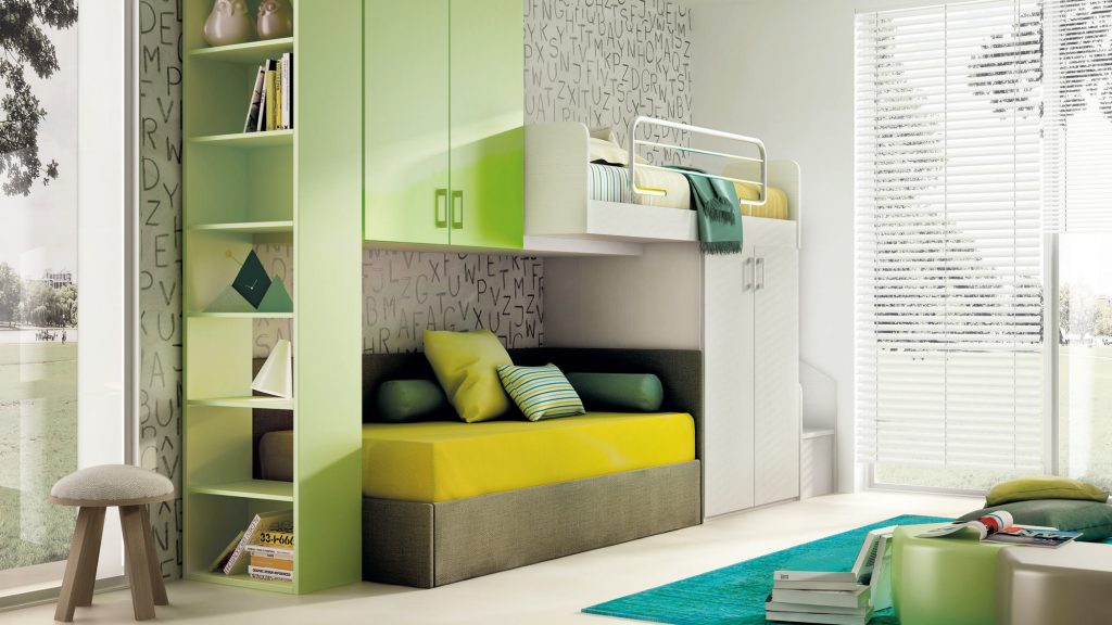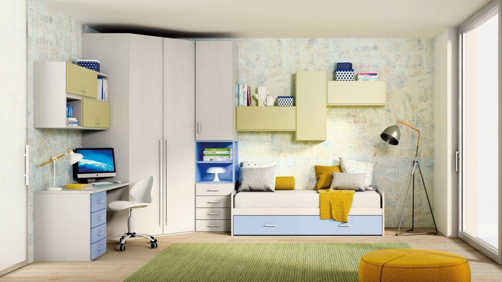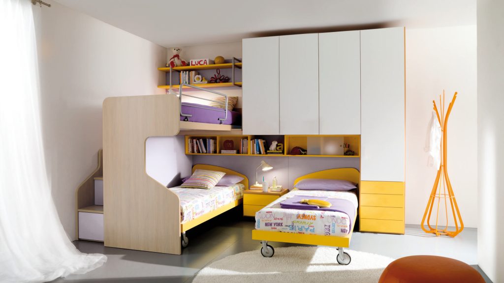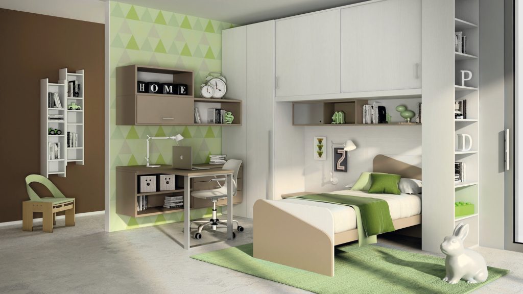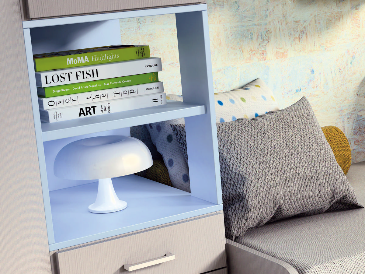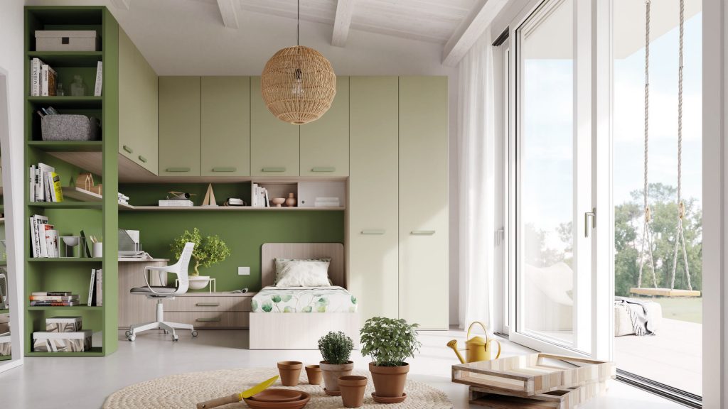 I letti si trasformano: diventano più grandi, contenitori, con possibilità di estrarre un secondo letto per un pigiama party con gli amichetti. Tutto è studiato per accompagnare il bambino nella transizione verso una crescente autonomia: dal riporre i vestiti all’organizzare la cartella.