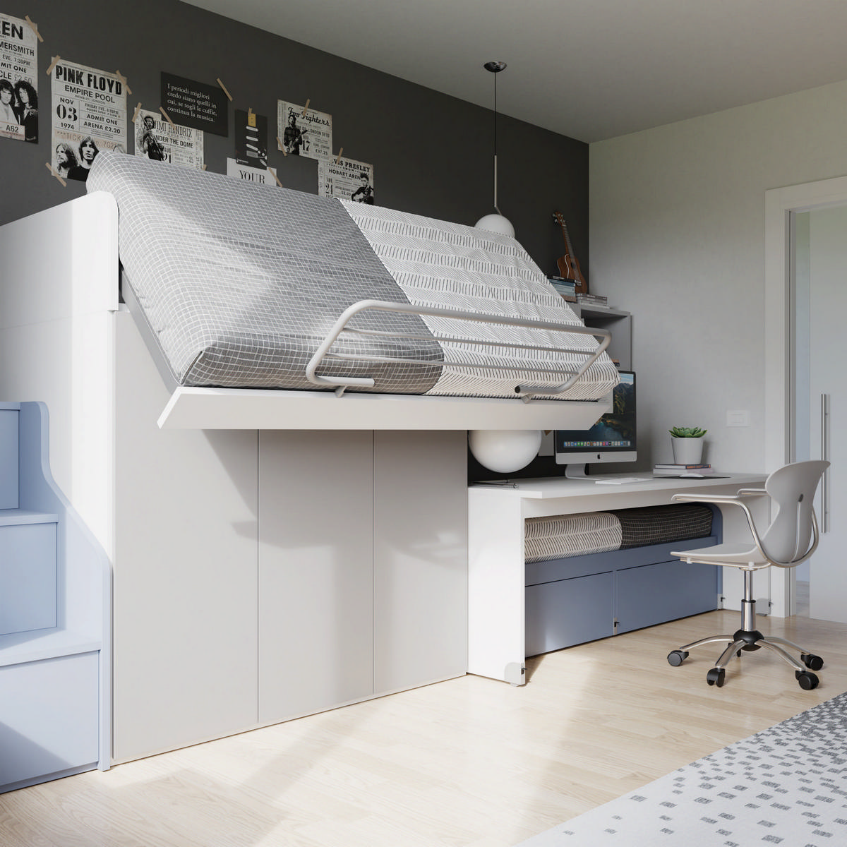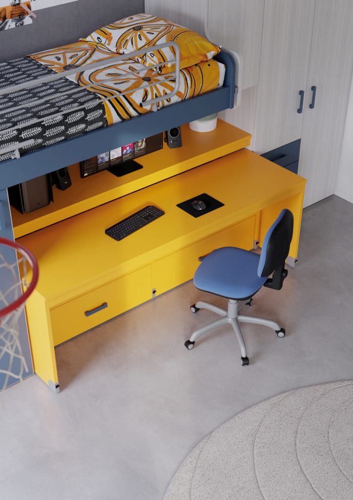 Letto elevato con area studio integrata